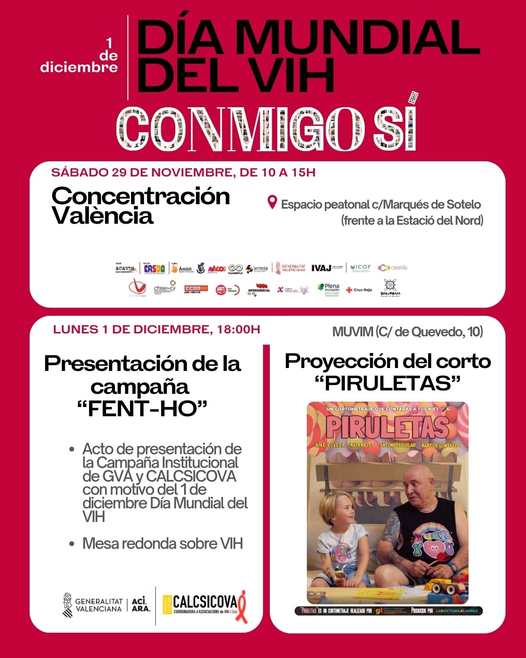 ➡️ 1 de diciembre (lunes). Presentación de la campaña 2025. Se hará una mesa redonda sobre VIH y finalizaremos la jornada con la proyección del corto «Piruletas».
